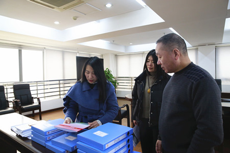 圖為檢查組檢查財務臺賬現(xiàn)場