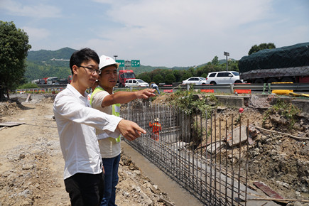 圖為工作人員到溫嶺西收費所車道拓寬現(xiàn)場檢查 烈日炎炎,在黃土嶺隧道現(xiàn)場,工程養(yǎng)護(hù)部人員拿著卷尺仔細(xì)測量,做好數(shù)據(jù)記錄,并查看分析路段中一些破損的部位,一個來回下來汗已濕透衣背。隨后,一行人趕往臺州南收費所鋼結(jié)構(gòu)施工現(xiàn)場,查看施工進(jìn)展情況,要求施工單位緊盯合同工期,加強施工管理,同時一再強調(diào)施工中要做好防暑降溫工作,避開高溫時間段施工,注重高溫作業(yè)安全。 近期,工程養(yǎng)護(hù)部現(xiàn)場管理人員時常頭頂烈日奔赴各施工現(xiàn)場監(jiān)工,查看路段護(hù)坡、路肩墻、防塵網(wǎng)施工情況,定時巡查溫嶺西車道拓寬工程進(jìn)展,督促各收費所裝修工程早日完工,沿線查看黃土嶺山體排水改造工程施工成果等。在查看施工進(jìn)展的同時,他們還在現(xiàn)場宣傳高溫酷暑安全防范的重要性,嚴(yán)抓工程質(zhì)量與安全。 李夢君