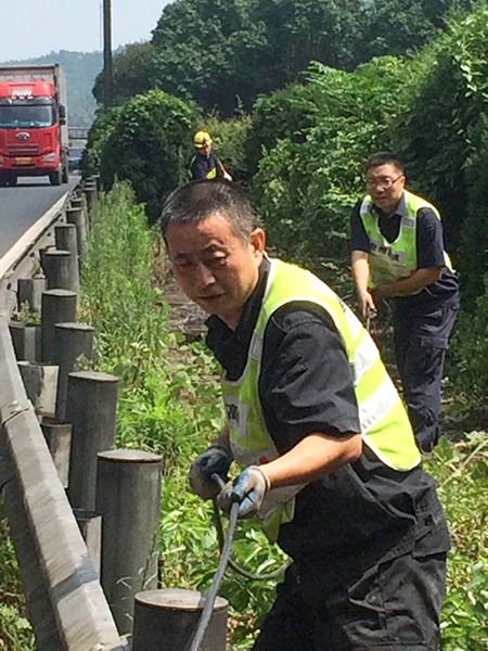 圖為修復(fù)后的隧道口路燈 對(duì)于修復(fù)被盜電纜,一般最直接的做法是重新再拉一根新電纜至配電箱,利用箱內(nèi)現(xiàn)成的控制開(kāi)關(guān)和交流接觸器等元器件,完成整個(gè)電纜連接工作,但中心隊(duì)員考慮到此種方法不僅工作量大,修復(fù)成本高,而且存在再次被盜的可能性,如果用鋁線代替,電力傳輸又要大打折扣。于是,他們另辟蹊徑,計(jì)劃從剩余配電箱至路燈還有200余米未被盜取的電纜中截取一段,直接和洞口情報(bào)板電纜相接,這樣既能節(jié)省人力、物力,又能以最快速度恢復(fù)路燈正常工作。 當(dāng)天一早,中心隊(duì)員帶上相應(yīng)的工具和設(shè)備直奔現(xiàn)場(chǎng),在確認(rèn)電纜位置及走向后,便著手抽離洞內(nèi)電纜。考慮到洞口到配電箱電纜至少有100余米,電纜溝下面又鋪有其他眾多電纜以及之前掉落的垃圾,直接從洞口抽離根本無(wú)法動(dòng)彈。于是,中心4名隊(duì)員便每隔10米左右用撬棍撬開(kāi)上面水泥蓋板,整個(gè)人跳進(jìn)電纜溝內(nèi),彎著腰一段一段抽離。抽到最后一個(gè)溝時(shí),4人頂著烈日,齊力把重達(dá)近百斤電纜抽離整個(gè)電纜溝并放置在護(hù)欄內(nèi)側(cè)草地上,隨后再?gòu)某槌龅倪@段電纜中剪取適當(dāng)長(zhǎng)度,重新鋪設(shè)后與寧向出洞口的情報(bào)板電纜相接。 臨近中午,戶外溫度不斷升高,中心隊(duì)員早已濕透衣背,為趕在一天中最熱的時(shí)間點(diǎn)前完成任務(wù),4名隊(duì)員臨近解決午餐又迅速奔赴現(xiàn)場(chǎng),拆除原配電箱內(nèi)的舊器件,將其用回到新的供電線路中,而多余的器件則捆綁打包帶回中心以留備用,節(jié)省公司后期維養(yǎng)成本。 下午1:40,經(jīng)過(guò)通電測(cè)試,9盞路燈全部恢復(fù)正常工作。集團(tuán)總工程師江輝在工程部微信群里肯定了中心工作,并提醒一線人員切記做好防暑降溫工作,注意自身身體狀況。