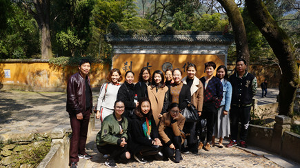 圖為第一批參加人員在瓊臺仙谷合影 上午9點30分,三個所共計40多位員工在集團公司下屬的旅行社導游小孫的帶領下,從臨海結集出發(fā),去往“人與自然和合、人與人和合、人與社會和合”的“和合圣地”——天臺,游覽國清寺和瓊臺仙谷?!昂秃衔幕笔翘炫_山文化的精華,也是中華傳統(tǒng)文化的核心與精髓。近年來,臺州市大力推進“和合文化”品牌建設,全力打造“和合圣地”,賦予“和合文化”新的生命力。大家深處由秀美的自然山水和內涵極豐富的佛道文化構成的天臺山美景中,享受著自在與輕松,整個活動過程更洋溢著“健康、和諧、友好、愉悅”的濃厚氛圍。 此次“一日游”活動,不僅激發(fā)了女員工們積極向上、自強不息的精神,也促進了同事之間的感情,增強了隊伍的凝聚力和戰(zhàn)斗力,從而營造和諧美好的氛圍。 鄭瑛芝