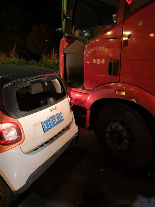 “碰”的一聲巨響。7月13日深夜11點30分左右,正好臨近交接班之際,一輛車牌為浙KJ2356的貨車與一輛車牌為浙JB5W70的小轎車在溫嶺西收費站一號超寬車道相撞,貨車把前面的小轎車后擋風(fēng)玻璃整個撞碎,玻璃灑落一地。