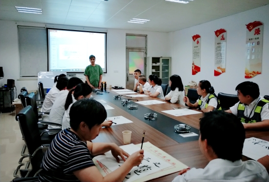 圖為學(xué)員練習(xí)書法 通過老師這種直觀的授課方式,學(xué)員們很快領(lǐng)會了書寫的基本節(jié)奏和韻律,每個(gè)人認(rèn)真臨摹、創(chuàng)作,用眼睛感受書法美、用練習(xí)探索書法美、用心靈領(lǐng)悟書法美、用手創(chuàng)造書法美,共同享受了一場別開生面的書法盛宴。 此次學(xué)習(xí)使大家掌握了更多書法理論知識和書寫本領(lǐng)技能,強(qiáng)化了員工們對書法藝術(shù)的欣賞和思考,也進(jìn)一步增強(qiáng)了員工間的凝聚力和吸引力。 鄭霞霞