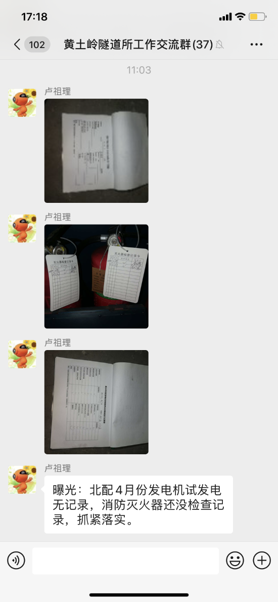 圖為檢查配電柜現(xiàn)場 目前,全國高速公路仍處于免費通行階段,黃土嶺隧道日流量高達6.3萬輛,日趨常態(tài)化的大流量成為隧道所安全管理的最大挑戰(zhàn)。為保障隧道行車安全,道路暢通,該所持續(xù)加強管理,在“五一”節(jié)前,重點對配電室、發(fā)電房進行了線路排查,對發(fā)電機進行日常維護與保養(yǎng),保證在遇突發(fā)停電情況時,設備能夠不斷電運行。還對滅火器、消防泵等應急設備進行檢查,確保有效應對突發(fā)事件。以及查看了隧道內的照明系統(tǒng)、警示標志等設施和排查房建方面有無脫落風化發(fā)生,確保雨季前的安全生產。