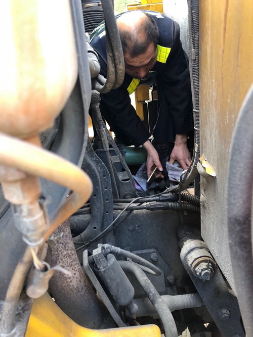 圖為施救現(xiàn)場 為了應對隨時可能出現(xiàn)的救援情況,中心領導發(fā)動人員兵分三路,火速進行離合器片的更換修理。機動人員聯(lián)系附近的4 S店,講明情況,可是沒有該種型號的離合器片,值班人員又火速趕往青嶺服務站去取新的備用離合器片。當班駕駛員馬上聯(lián)系了院橋駐點當班人員,必要時進行聯(lián)動配合。 當晚十點半左右,離合器片終于更換完畢,當班人員立即進行性能測試,這輛使用頻率超高的救援車又奔跑在緊張的救援路上。 王凱