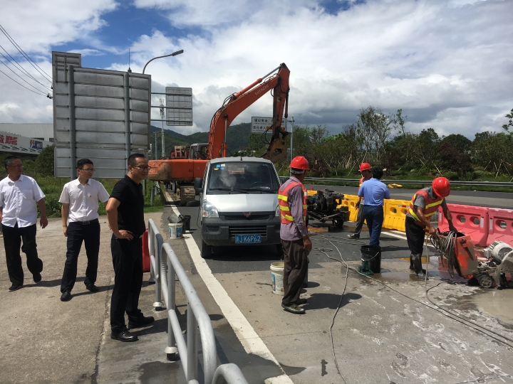 在甬臺溫高速公路臺州段溫州方向主線K1668+200M處現(xiàn)場,陳文波詳細(xì)了解龍門架吊裝的施工工序、取消省界收費(fèi)站總體施工進(jìn)展情況、項(xiàng)目時間節(jié)點(diǎn)、人員班組安排及安全措施準(zhǔn)備情況等。