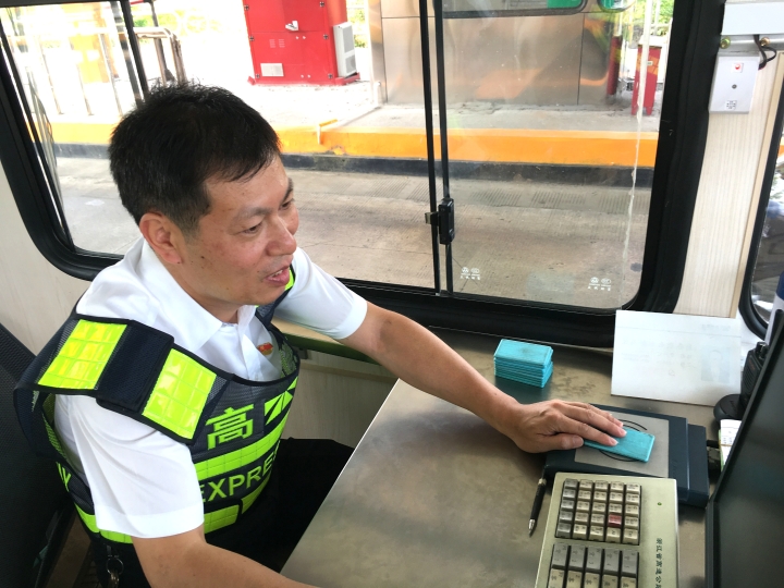 而在對(duì)面發(fā)卡的安全總監(jiān)項(xiàng)同富正襟危坐,等待著車子的駛?cè)耄?/span>“記住動(dòng)作就忘記微笑,笑起來又忘記要說什么......真有點(diǎn)手忙腳亂的,做好收費(fèi)員,不容易?!?/span>