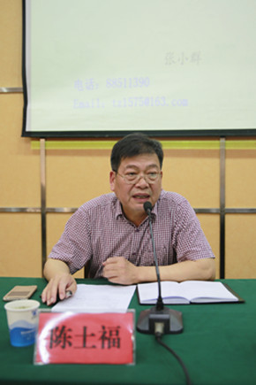 圖為市國資委副主任陳土福主持會議 培訓會分別邀請了臺州市安全生產監(jiān)督管理局張小群處長和杭州六進消防培訓中心李峰教員進行授課。