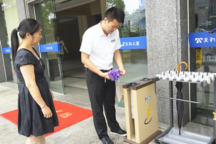 圖為物業(yè)公司工作人員幫助來(lái)客折傘 為提高物業(yè)管理質(zhì)量,營(yíng)造安全、舒心的大樓環(huán)境,前段時(shí)間,辦公室根據(jù)大樓實(shí)際情況和業(yè)主需求,精心制定更換物業(yè)方案,擴(kuò)大選擇物業(yè)公司至全省范圍,深入調(diào)查了解有選擇意向的物業(yè)公司,并通過(guò)現(xiàn)場(chǎng)考察以及經(jīng)由天和大廈業(yè)委會(huì)開(kāi)會(huì)決定,最終敲定浙師大印象物業(yè)管理有限公司負(fù)責(zé)本大樓物業(yè)管理。 5月1日,該物業(yè)公司正式入駐大樓,開(kāi)啟了新物業(yè)管理改革風(fēng)潮,在服務(wù)質(zhì)量、人員形象、崗位職責(zé)、保潔等方面進(jìn)行了全面整改。對(duì)比原先的物業(yè)公司,他們不僅增加人員配置,還提高上崗人員形象、素質(zhì)要求,整體改善大樓一些臟、亂的環(huán)境,設(shè)立服務(wù)中心前臺(tái)、統(tǒng)一規(guī)范業(yè)主廣告位、在大廳放置沙發(fā)以接待訪客等,尤其在大樓正門入口一側(cè)設(shè)立形象崗,同時(shí)根據(jù)大樓用戶需要,分別在大樓A、B幢放置快遞柜,方便用戶取用物品。為了大樓安全,該物業(yè)公司還摸底各樓層工作人員名單、聯(lián)系方式、具體辦公地點(diǎn),以防陌生人員無(wú)故闖入大樓。 據(jù)該物業(yè)公司副總經(jīng)理霍正佩介紹,其公司要求形象崗上的工作人員要規(guī)范使用迎賓用語(yǔ),同時(shí)服務(wù)中心前臺(tái)客服人員上班時(shí)間延長(zhǎng)至晚8點(diǎn),以更好地滿足部分業(yè)主需求。 在此期間,公司辦公室一直持續(xù)跟進(jìn)物業(yè)交接、整改工作,共同完善物業(yè)管理,創(chuàng)造大樓新形象。在新物業(yè)入駐第二天,公司安保部便對(duì)安全生產(chǎn)工作情況進(jìn)行了全面檢查,并提出整改建議。 陳林偉