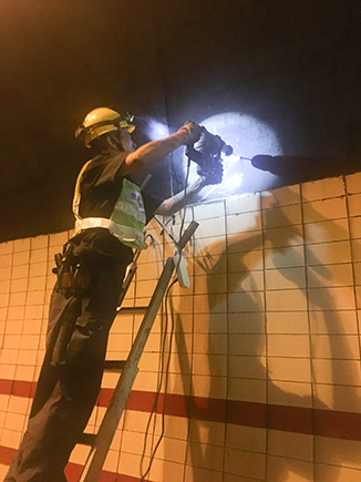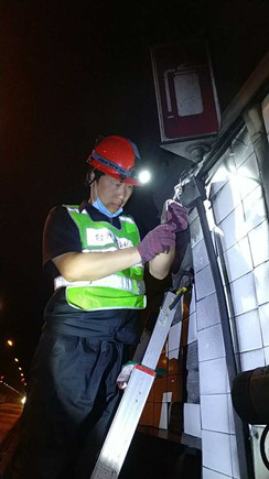 圖為工作人員安裝消防燈燈泡 大溪嶺—湖霧嶺隧道全長4116米,為保障隧道內行車安全、暢通、舒適,定期組織安排清洗隧道兩壁墻體、邊溝,檢修內部各項機電設施成了維養(yǎng)中心每季必不可少的工作之一。而每次清洗檢修必將涉及封道,為最大程度減少因封道對社會造成的負面影響,中心工作人員早在一周前就對隧道內各項損壞機電設備進行摸底統(tǒng)計,以便合理制定維修方案和安排施工人員。 12號早上7點,隨著封道工作就緒,兩組清洗隊伍分別從隧道中部開始向兩頭清洗,六組專業(yè)燈具維修人員站在貨車腳手架上由北往南逐個推進,發(fā)現(xiàn)一盞修復一盞,或更換燈管、或更換觸發(fā)器、或更換鎮(zhèn)流器,對于一些同時有多個配件壞死或腐蝕嚴重的燈具就直接采取整體更換措施,大大提高了工作效率。而中心工作人員除了現(xiàn)場全程協(xié)調管理以外,還負責修復隧道兩壁逃生標志及報警電話等多個指示牌。按照之前制定的計劃,六人兵分兩組由隧道兩頭分別向中間修復,這樣既能與其他工作同時進行又不造成相互干擾。另外一人則配合隧道所一起在登高車協(xié)助下,對洞內各類攝像頭進行逐個清理,全場人員各司其職,各盡其責,現(xiàn)場一派忙碌的景象。 4公里多長的隧道,由于流動性差,洞內空氣質量比霧霾嚴重數(shù)倍,僅一只口罩根本凈化不了廢氣,但由于時間緊,任務重,中心隊員和施工人員顧不上惡劣的環(huán)境,努力和時間賽跑,兩日下來共修復(清理)損壞燈具100余套,各類標志指示牌40余塊,攝像頭30余個,恢復了隧道內各項機電設施的正常運行,排除一切安全隱患,有效保證了隧道安全暢通。 項寅曉
