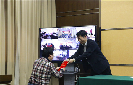 圖為集團(tuán)副總經(jīng)理陳保衛(wèi)為“2017年全市交通建設(shè)先進(jìn)個人”何翔頒獎