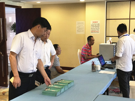 圖為集團(tuán)副總經(jīng)理陳保衛(wèi)正在檢查收購點宣傳資料
