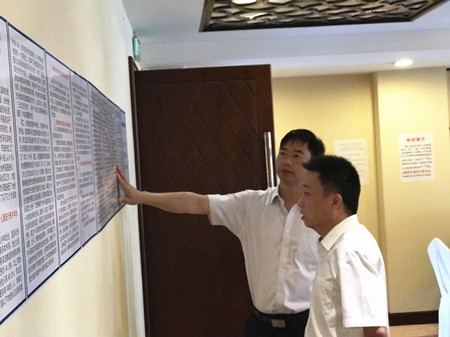 圖為集團(tuán)副總經(jīng)理陳保衛(wèi)正在檢查標(biāo)語標(biāo)識 陳保衛(wèi)認(rèn)真查看了仙居收購點從入口到辦理點的指示標(biāo)牌,并向工作人員詢問了該收購點所在酒店的知名度。經(jīng)工作人員介紹,仙居?xùn)|方大酒店是仙居當(dāng)?shù)厝朔浅J煜さ木频?,還未發(fā)生過股東找不到收購點而打電話詢問的事。陳保衛(wèi)聽后面帶微笑,連連點頭。 走到收購點內(nèi),員工正在給幾名股東辦理咨詢業(yè)務(wù),陳保衛(wèi)轉(zhuǎn)身查看起收購點內(nèi)等待區(qū)、標(biāo)語標(biāo)識等布置。當(dāng)看到貼在墻上的“市國資委主任徐豪就臺州高速股權(quán)集中和優(yōu)化的有關(guān)問題接收臺州各大媒體的采訪提問”內(nèi)容時,陳保衛(wèi)認(rèn)為該招貼畫制作簡潔、一目了然,可以較好地展示公司形象,回答股東疑問。他要求收購點工作人員再接再厲、主動作為,以熱情飽滿的服務(wù)態(tài)度,貫徹落實好各項工作部署,共同努力完成股權(quán)集中和優(yōu)化工作。 眼下,該收購點股權(quán)集中和優(yōu)化工作已步入正軌,各項工作運行平穩(wěn)正常,當(dāng)前正在為9月8日仙居縣國有資產(chǎn)投資集團(tuán)有限公司第一個轉(zhuǎn)讓股權(quán)宣傳事宜進(jìn)行多方協(xié)調(diào)。 張波