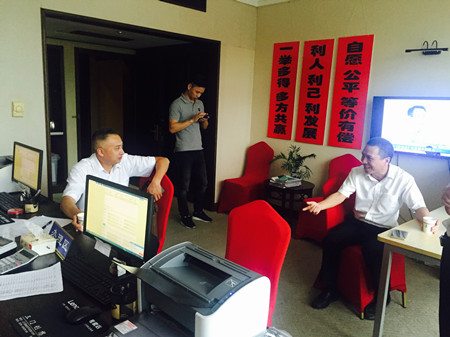 圖為集團(tuán)副董事長(zhǎng)、總經(jīng)理張建平在天臺(tái)收購(gòu)點(diǎn)詳細(xì)詢問(wèn)收購(gòu)工作具體開(kāi)展情況 張建平向各地方政府前期對(duì)公司股權(quán)收購(gòu)工作的支持表示感謝,他介紹了當(dāng)?shù)嘏_(tái)州高速股權(quán)收購(gòu)進(jìn)展情況,同時(shí)闡明收購(gòu)工作中存在的困難,需要地方政府繼續(xù)對(duì)我們的工作給予支持和幫助。三地政府都表示一定會(huì)全力支持這項(xiàng)工作。仙居縣分管公司股權(quán)收購(gòu)的常務(wù)副縣長(zhǎng)說(shuō),“放心吧,我們一起想辦法,先從持股較多的法人股入手,再化大力氣做小股東工作,一定會(huì)圓滿完成任務(wù)。” 張建平一行先后來(lái)到三地股權(quán)收購(gòu)點(diǎn),向收購(gòu)一線的工作人員表示親切的問(wèn)候。張建平對(duì)大家的工作給予肯定,感謝所有人勤勤懇懇,無(wú)私付出,并希望大家繼續(xù)努力,共同實(shí)現(xiàn)目標(biāo)。工作人員詳細(xì)介紹了日常具體工作方法,他們緊跟公司股權(quán)收購(gòu)總體布局,并結(jié)合當(dāng)?shù)靥厥馇闆r,因地制宜,有序靈活地開(kāi)展股權(quán)收購(gòu)工作。