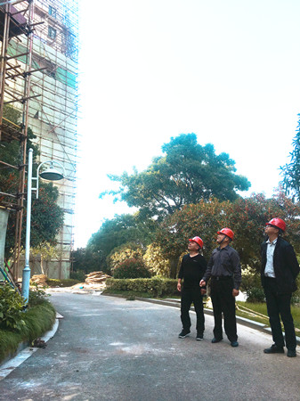 公司監(jiān)察室人員到溫嶺水韻新村墻體脫落修復(fù)工程現(xiàn)場(chǎng)督查