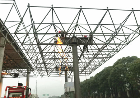 “起吊”,隨著現(xiàn)場(chǎng)施工管理人員的一聲令下,兩臺(tái)吊機(jī)吊著鋼結(jié)構(gòu)網(wǎng)架緩緩升起。“往左一點(diǎn),慢一點(diǎn)”經(jīng)過(guò)近十分鐘的努力,在施工現(xiàn)場(chǎng)管理人員的準(zhǔn)確指揮下,吊機(jī)駕駛員輕輕地把鋼結(jié)構(gòu)網(wǎng)架準(zhǔn)確無(wú)誤地放在預(yù)定支架上,溫嶺西收費(fèi)車(chē)道鋼結(jié)構(gòu)網(wǎng)架成功完成吊裝。接下來(lái)施工人員陸續(xù)在網(wǎng)架上鋪設(shè)面板,安裝標(biāo)志牌、照明、監(jiān)控等設(shè)備,并對(duì)崗?fù)C(jī)電進(jìn)行調(diào)試。