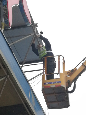 而這項(xiàng)工程中最重要的就是鋼結(jié)構(gòu)網(wǎng)架吊裝,鋼結(jié)構(gòu)網(wǎng)架長(zhǎng)18米,寬9.4米,重達(dá)15噸。為了減少集團(tuán)通行費(fèi)的損失和保證吊裝過(guò)程的安全,工程養(yǎng)護(hù)部與施工單位合力研究,專(zhuān)門(mén)編制了專(zhuān)項(xiàng)吊裝方案,動(dòng)用了兩臺(tái)25噸吊機(jī)。