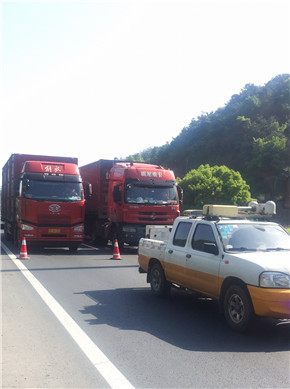 “南廣場有大貨車報警,據(jù)說發(fā)生事故……”4月17日凌晨3時55分,大溪嶺隧道中控室接到了臺州監(jiān)控中心緊急來電,執(zhí)勤隊立即驅(qū)車趕赴現(xiàn)場查勘。 巡邏車到達(dá)南廣場后,執(zhí)勤隊員發(fā)現(xiàn)溫向隧道進(jìn)洞1公里處,隧道頂部的攝像頭被撞損,造成電纜橋架移位,電纜下垂橫跨車道,存在嚴(yán)重安全隱患。事發(fā)突然,執(zhí)勤隊員立刻做好安全預(yù)警措施,同時聯(lián)絡(luò)集團(tuán)工程養(yǎng)護(hù)部機(jī)電維養(yǎng)中心,請求支援開展緊急搶修。