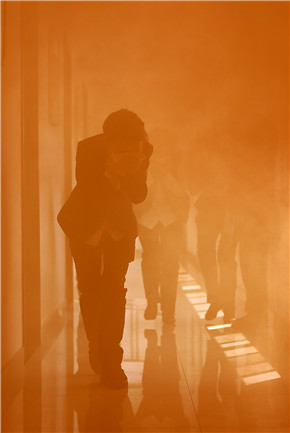 該演練模擬了生活樓發(fā)生火災(zāi),員工一發(fā)現(xiàn)火情就立即撥打了報(bào)警電話(huà)。參加演練人員聽(tīng)到警報(bào)聲后,迅速拿起打濕的毛巾捂住口鼻,手扶墻體或樓梯扶手,俯身低姿從三樓或二樓,向安全通道有序撤離。全體人員不一會(huì)就疏散到了安全地帶,同時(shí)連接好消防水帶,迅速跑至火源附近,對(duì)準(zhǔn)火源有效滅火。