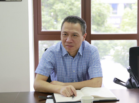 圖為集團副董事長、總經(jīng)理張建平認真聽取相關(guān)人員下階段工作安排匯報
