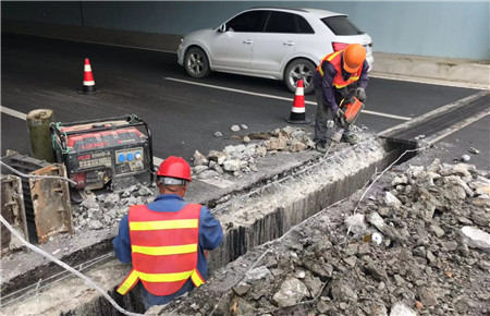 圖為施工現(xiàn)場 臺州市內(nèi)環(huán)路(10+170~8#立交)工程于2018年3月10日竣工驗收,目前處于兩年的保修期范圍內(nèi),由于框架橋的結(jié)構(gòu)特性和當(dāng)?shù)氐牡鼗攸c,站西大道下穿跳車的問題一直無法得到有效解決,而這也成了影響內(nèi)環(huán)路行車舒適度的首要問題之一。早在2018年6月12日,市政公司就組織施工單位對當(dāng)時的路面進(jìn)行了銑刨后重鋪瀝青路面的施工處理,但是經(jīng)過9個月的運(yùn)行沉降后,橋頭跳車問題再次出現(xiàn)。本著有險必修,有錯必究的原則,市政公司再次組織施工單位對該段路面的維修問題進(jìn)行了現(xiàn)場論證,根據(jù)論證結(jié)果進(jìn)行了修復(fù)性施工。