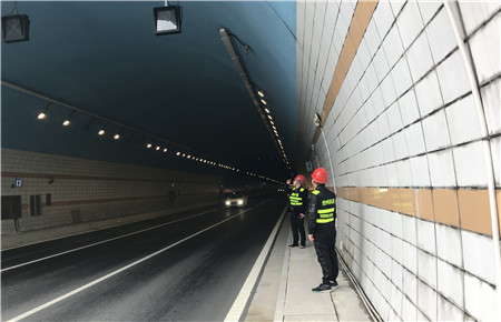 圖為檢查隧道內(nèi)照明 接下來的假期,市政公司要求全體人員保持手機暢通,為保證突發(fā)情況能及時聯(lián)系,確?!拔逡弧奔倨谄陂g內(nèi)環(huán)路的安全通暢。 徐夢燁